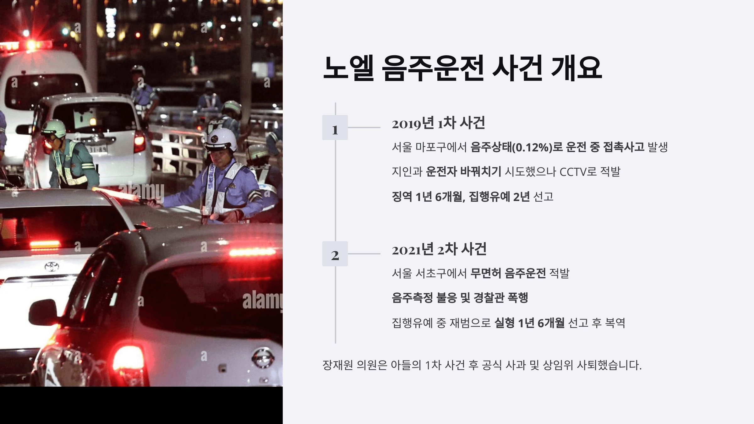 ✅ 2차 사건: 2021년 무면허 음주운전 및 경찰 폭행